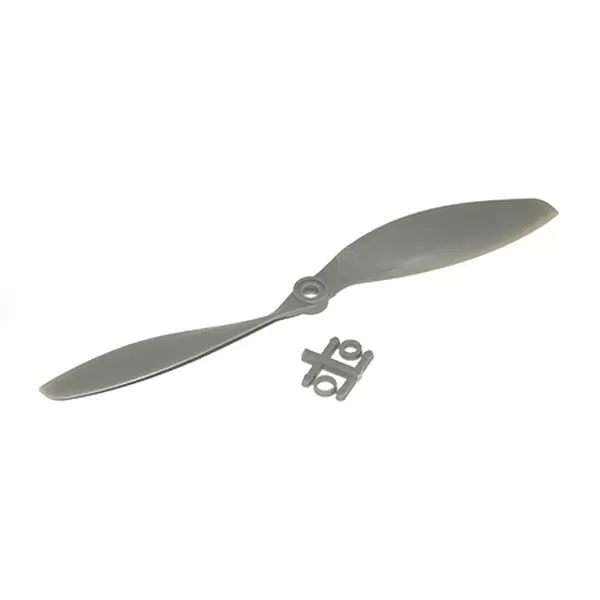 This is the APC 8×6 Slo-Flyer Electric Propeller. APC propellers are manufactured using a pultrusion process which allows for a higher fiber (60%) to resin (nylon binder) density. This provides substantially higher strength and stiffness than with glass filled nylon. The additional stiffness is beneficial to control of vibration resonance response. The higher strength allows the use of thinner cross-sections, beneficial to weight and aerodynamic efficiency.