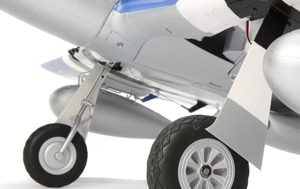 No glue is required for assembly and you can have the P-51D Mustang 1.5m ready to fly in less time than it takes to charge a battery! The 3-piece wing design makes transport and storage as practical and convenient as possible because the centre section includes the main gear and the outer panels snap into place securely without fasteners.