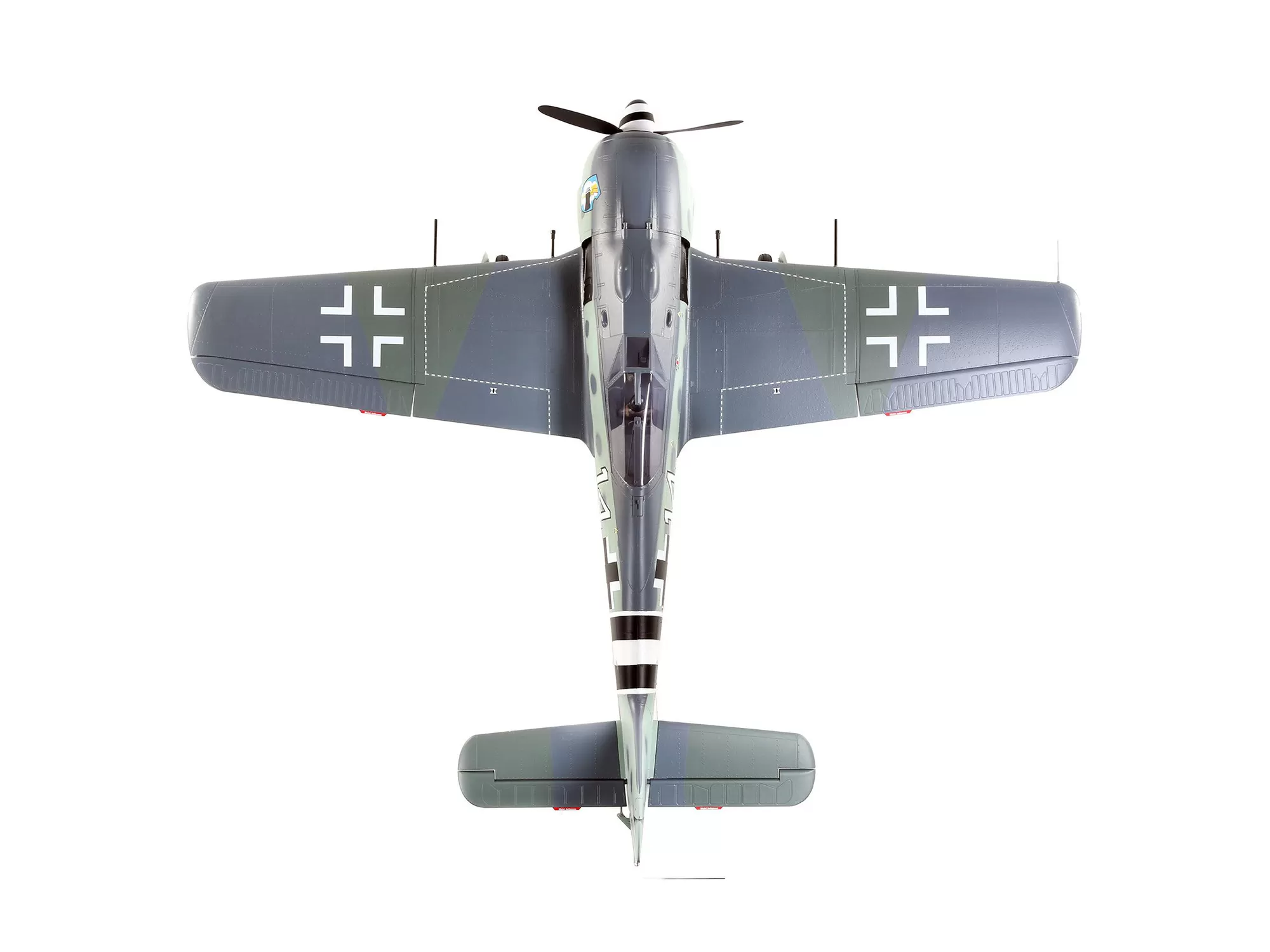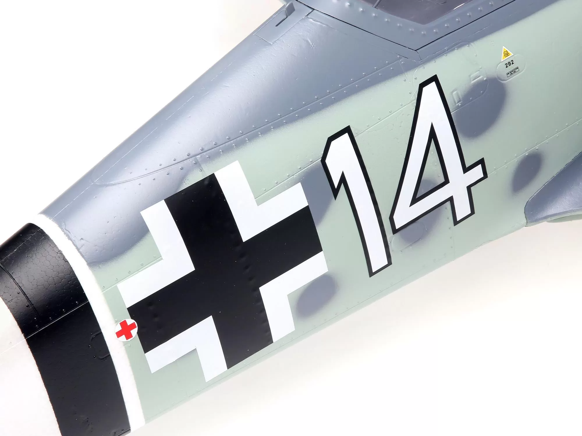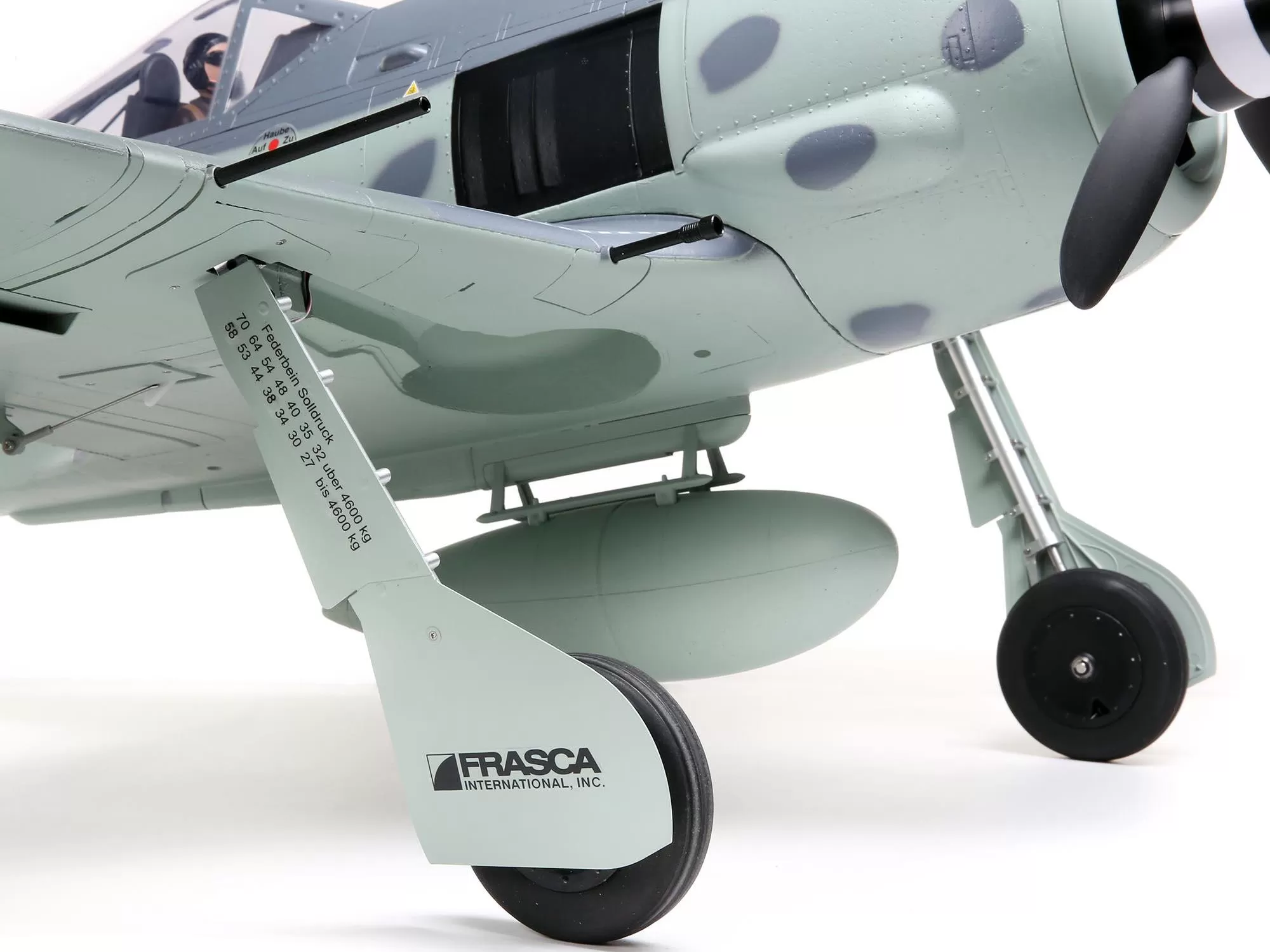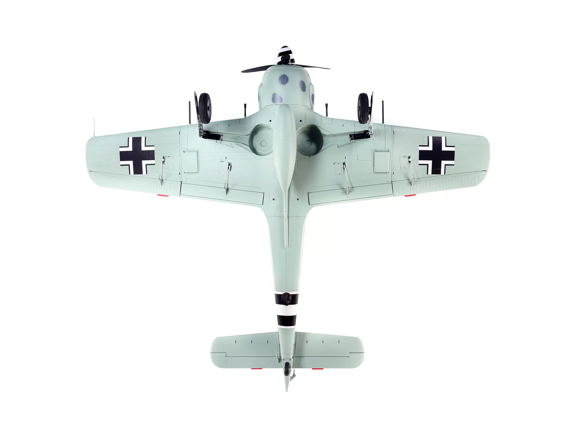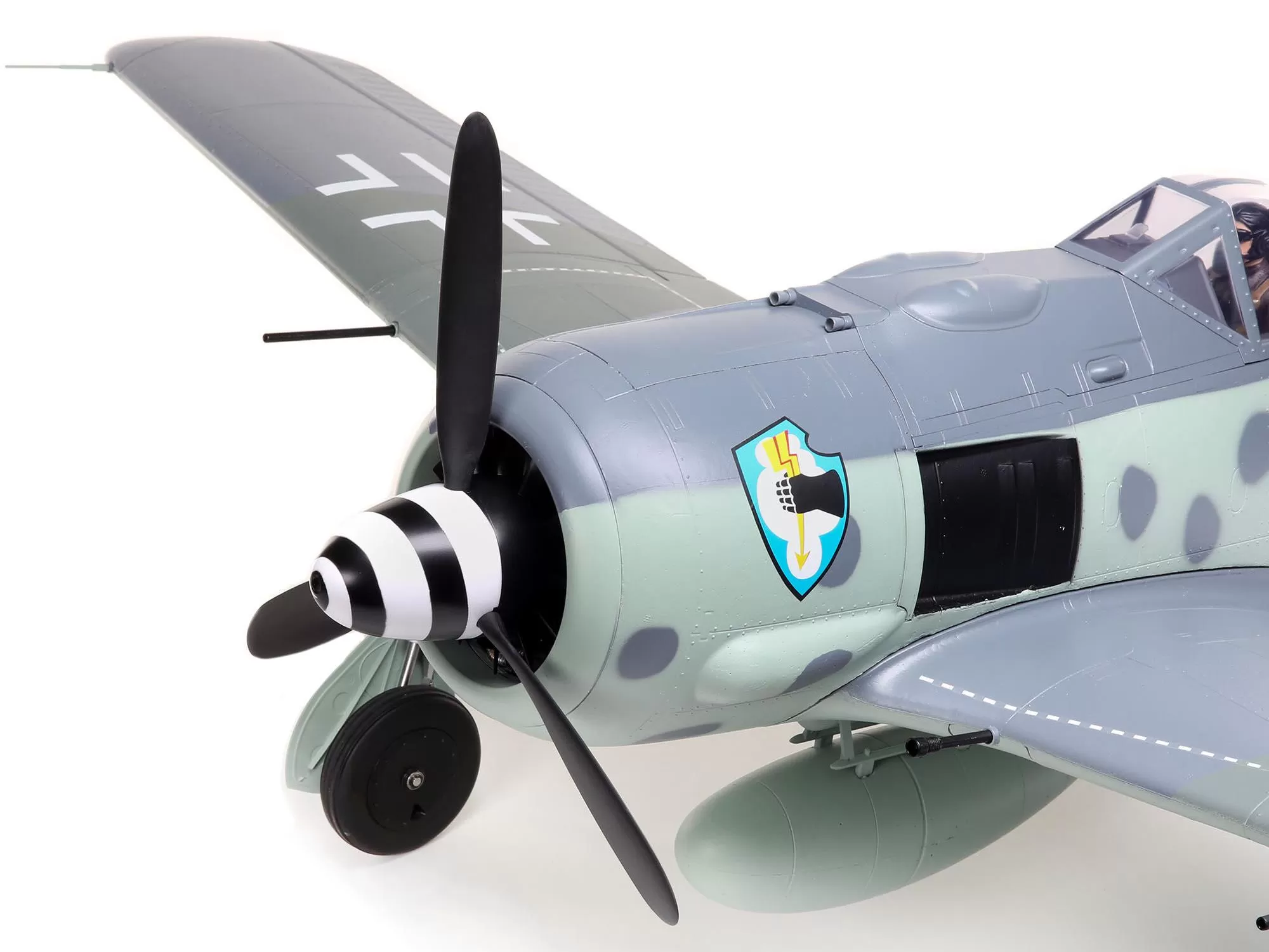 The wide-spaced main gear feature factory-installed electric retracts equipped with durable metal components and shock-absorbing struts that make it possible to fly from a wider variety of surfaces including paved runways and grass. And unlike most other Fw 190 models, the scale-like length struts offer a more authentic scale look and experience.
