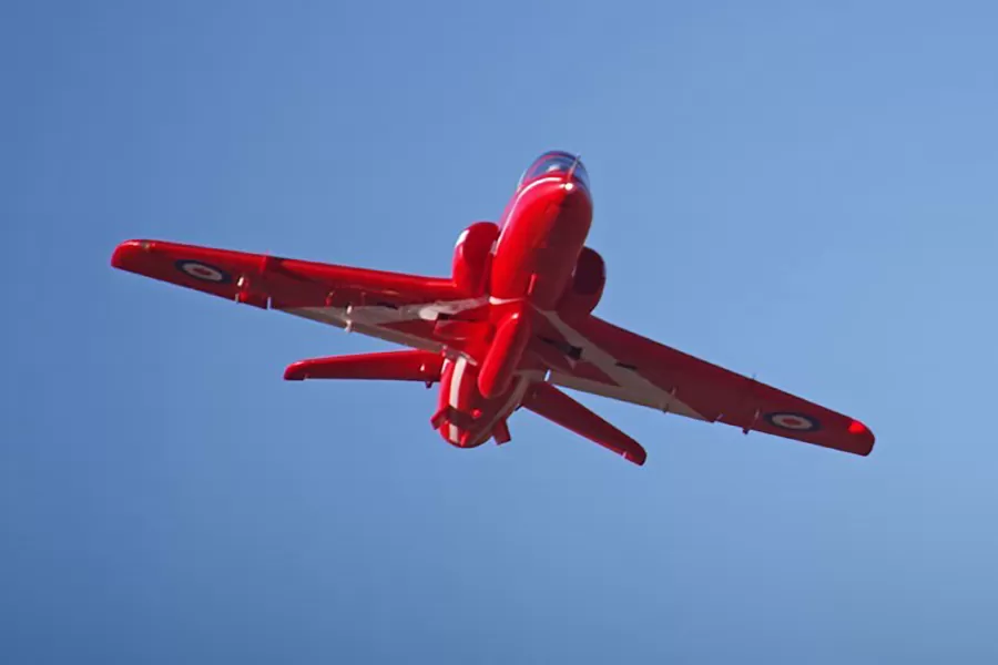 The British Red Arrows, known as the Royal Air Force Aerobatic Team, is the official display team of the RAF and based at RAF Scampton. The team was formed in late 1964 as an all-RAF team and initially equipped with Foland Gnat trainers inherited from the RAF Yellowjacks display team. The switch to the BAE Systems Hawk T1 weapons trainer came in 1980 and has since performed with distinction at locations around the globe.