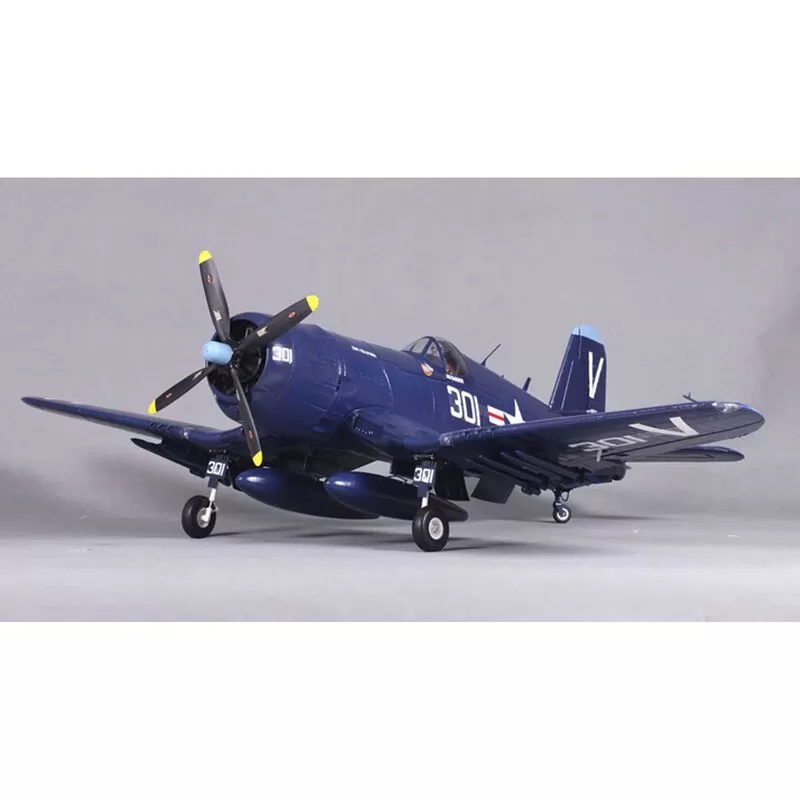 The FMS F4U-4 Corsair is a remarkably scale tribute to this warbird icon that’s a blast to fly. Sporting a pair of 90 degree rotating retractable landing gear, fully functional split flaps, and it ‘s powerful motor spinning a 14×8 4 blad prop, you have everything you need for high-speed strafing runs and spirited sport aerobatics. Then you can drop the landing gear and finish off the flight with a slow gentle landing.