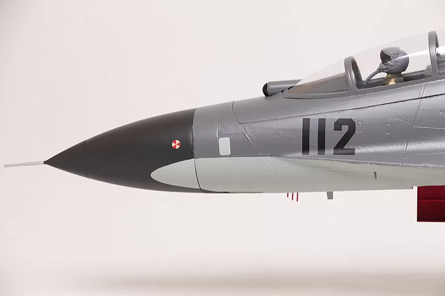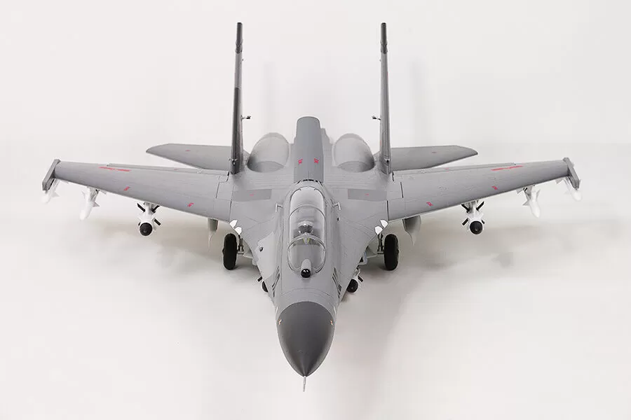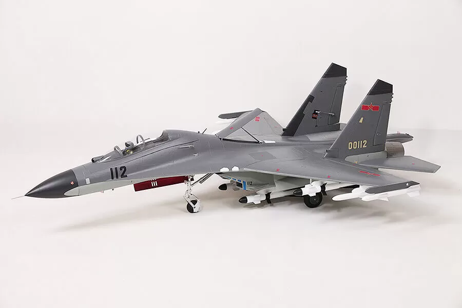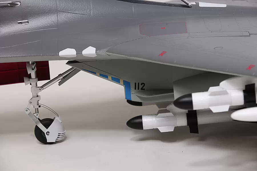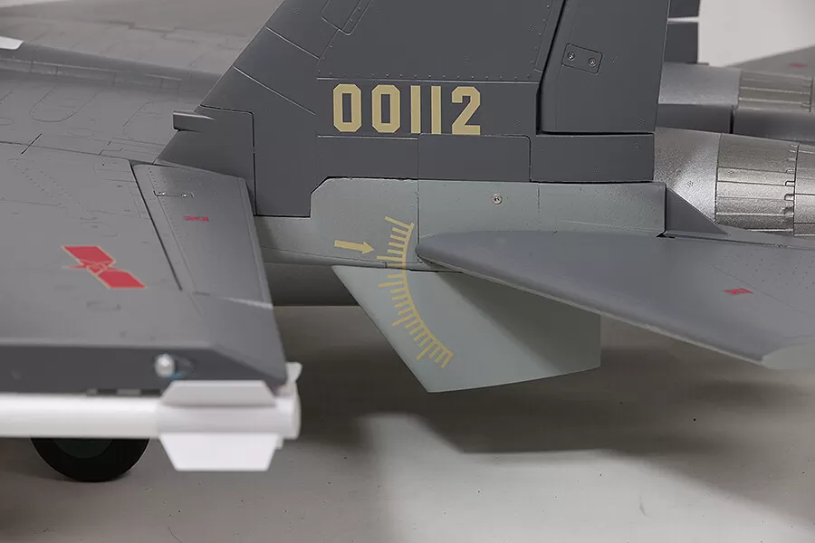 In terms of appearance, FMS captures the essence of this fighter. Functional restoration, such as large size airbrake, LED navigation lights & landing lights, full-motion tail, landing gear door with sequencing effect, retractable landing gear system that can resist hard landings, static restoration such as cockpit details, panel lines, detachable ordnance, pilot, and highly recognizable trim scheme, all these details combine to make the FMS J-11 stand out on the tarmac and in flight.