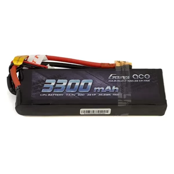 The Gens Ace 3S 50C 3300mAh Soft Case LiPo Battery Pack features an XT60 connector and is a great option for most 1/10 and 1/8 applications. This battery features the high-capacity and high-discharge rate that gives you the power and run-time you expect from Gens Ace LiPo batteries.