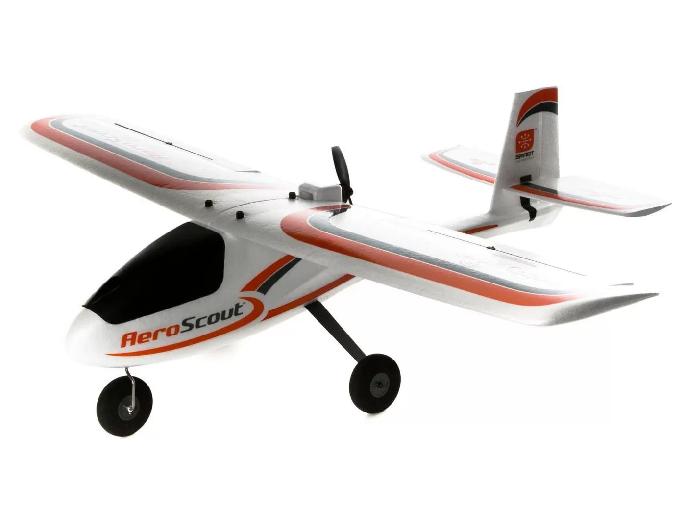 The HobbyZone® AeroScout™ S is the perfect trainer because it makes learning to fly an RC airplane easier and more fun than ever before! It’s equipped with exclusive SAFE® (Sensor Assisted Flight Envelope) technology that helps to prevent overcontrol, loss of orientation and crashes so nearly everyone can learn to fly successfully. Beginner, Intermediate and Experienced modes allow you to choose the level of stability and control you need, or are ready to try, at the flip of a switch. Plus you can instantly return to steady flight using Panic Recovery with the push of a button in any flight mode. Its unique “pusher” power configuration offers improved safety along with better propeller and motor protection, and its built with advanced EPO material that makes it extremely durable. Oversized tyres and a steerable nose wheel make it easy to take off from and land on a variety of surfaces including grass at large parks, soccer and other suitable flying fields. The Ready-To-Fly (RTF) version includes a Spektrum DXe controller/transmitter equipped with industry-leading DSMX® 2.4GHz control technology, plus a Spektrum Smart LiPo battery and charger that make it easier and safer to charge. That means there’s nothing extra you need to buy or provide before you can fly!