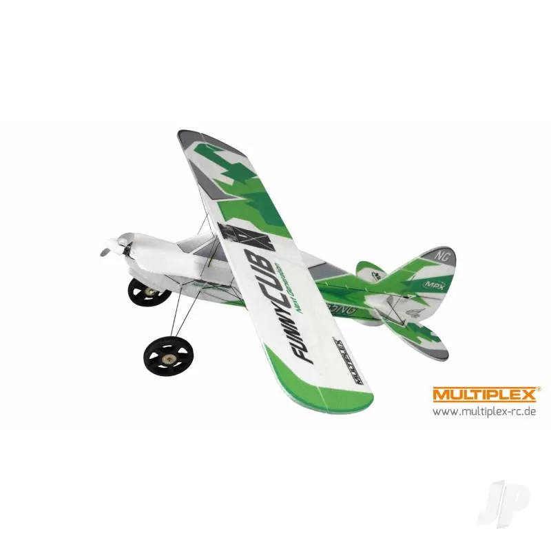 The MULTIPLEX FunnyCub brings Bush flying fever into the sports halls and gardens of the model flying fraternity. Due to its large wheels and slightly sprung chassis, it can start and land almost everywhere, just like its big predecessor the FunCub. Optionally, the two ailerons can still be lowered for use as landing flaps, which further reduces the airspeed and take-off distance. The FunnyCub is therefore a “must have” for all bush pilots and indoor fans, as well as those who just want to spend a relaxing flight behind the house. The EPP model is very robust and forgives most mistakes. Almost all imaginable aerobatics are possible with the model.