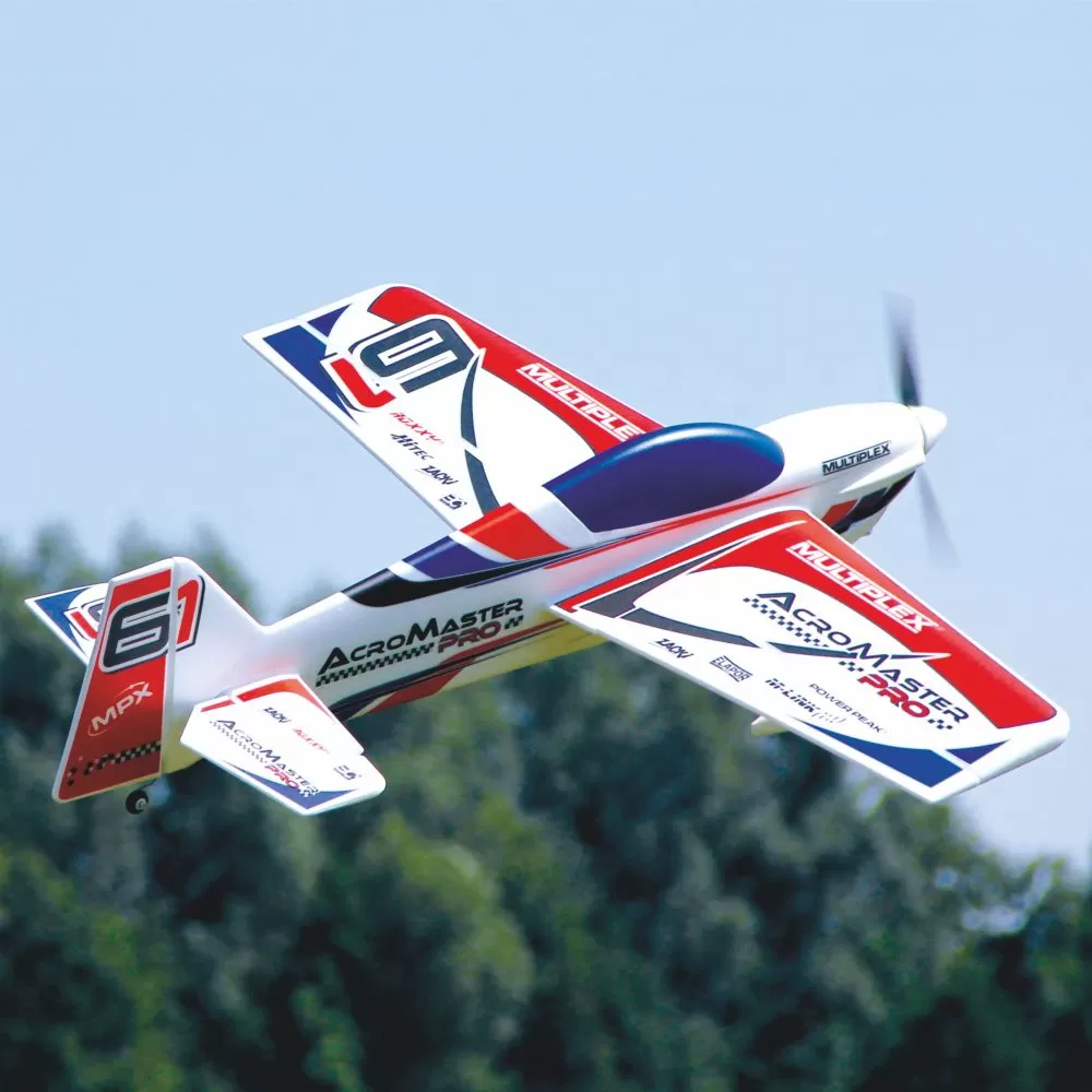 The Multiplex RR AcroMaster Pro is the logical evolution of Multiplex’s very popular Acromaster, introduced in 2006. It sees improvements in may areas but Multiplex have been true to the design of the original. So the appearance of the AcroMaster PRO is familiar at first glance, but still completely new and fresh. With all of these changes, the AcroMaster PRO is better than ever before. Due to its easy flight characteristics and its aerobatic versatility it is ideal for a relaxing get-away flight or for perfecting aerobatic routines. Like its predecessor, the AcroMaster PRO is designed as an all-rounder. This means that you can fly both precise and classic aerobatics, as well as 3D. For learning aerobatics and as a training machine for ambitious aerobatic pilots the AcroMaster PRO is just perfect!