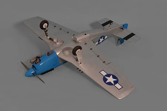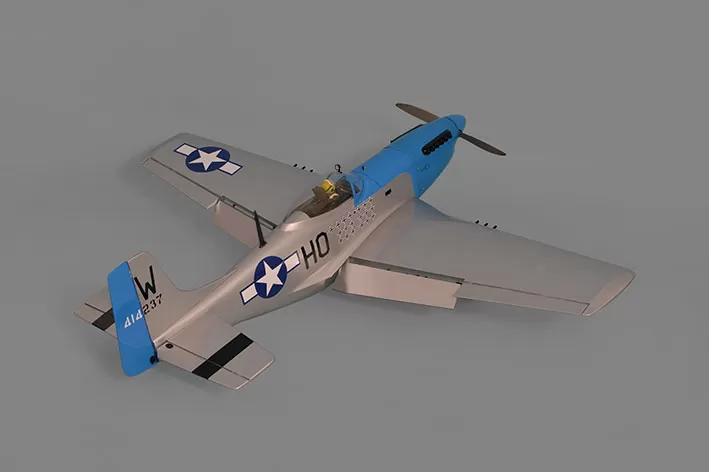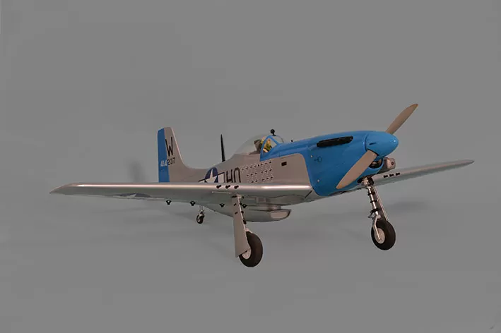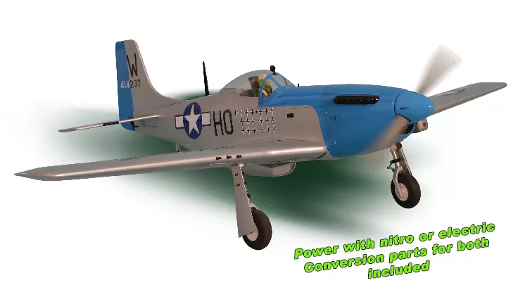 The Mustang P51 is a famous fighter that flies almost anywhere! This has been a favorite of R/C modelers for years – and now the Mustang P51 is available as an easy-going, 95% Almost Ready-to-Fly. Created with the scale enthusiast in mind, this almost-ready-to-fly airplane replicates the scale outline of its full-scale counterpart with accuracy. the Mustang P51 is packed with scale details. Including Retract landing gear and all the hardware are included (servo wire, fuel tank, wheel/landing gear, etc). You only need to separately purchase the nitro engine and radio system, and fly.