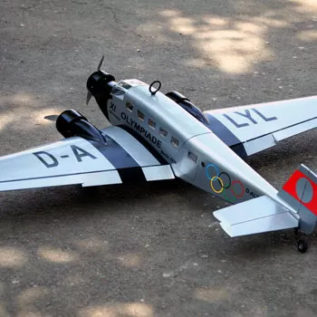 This VQ ARF’s reproduction Junkers Ju-52 R/C aircraft is designed for modern electric motor systems. At its core, this model has a very scale outline and features many details not usually found on a sport ARF wood model.